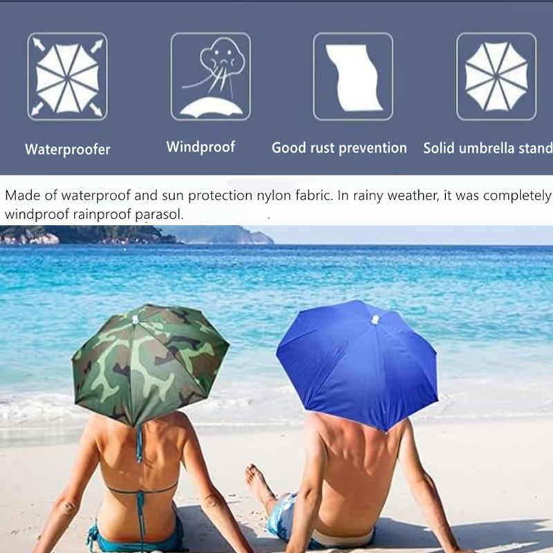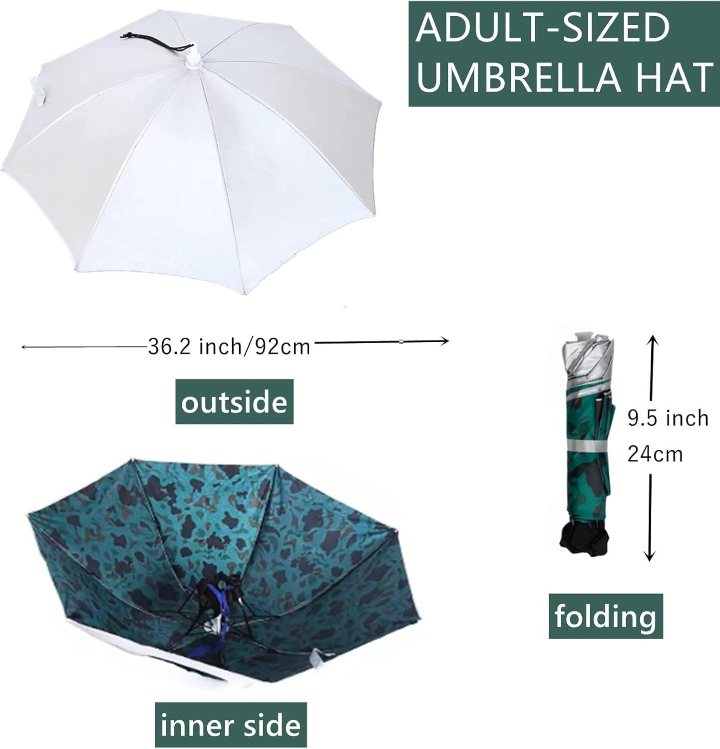36" Diameter Fishing Umbrella Hat Folding Adjustable Sun Rain Cap